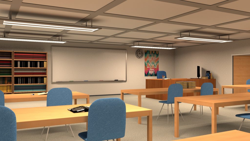 This is the current rework of the project above. So far there are only 2 classrooms however neither are done yet because I’ve been working on the little details of the hallway.